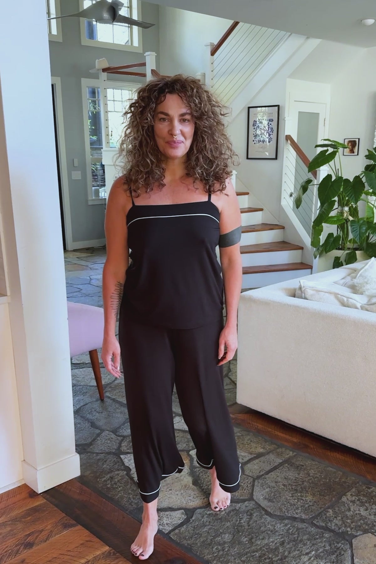 Pyjama Rowan en bambou avec débardeur à bandes et pantalon large